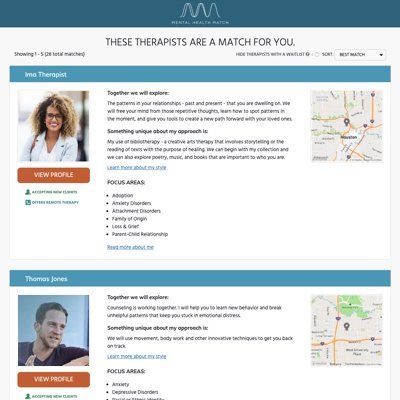 Mental Health Match is such an amazing resource. I've had so much trouble looking for therapists with my specific needs and this site was able to find exactly what I needed almost instantly.